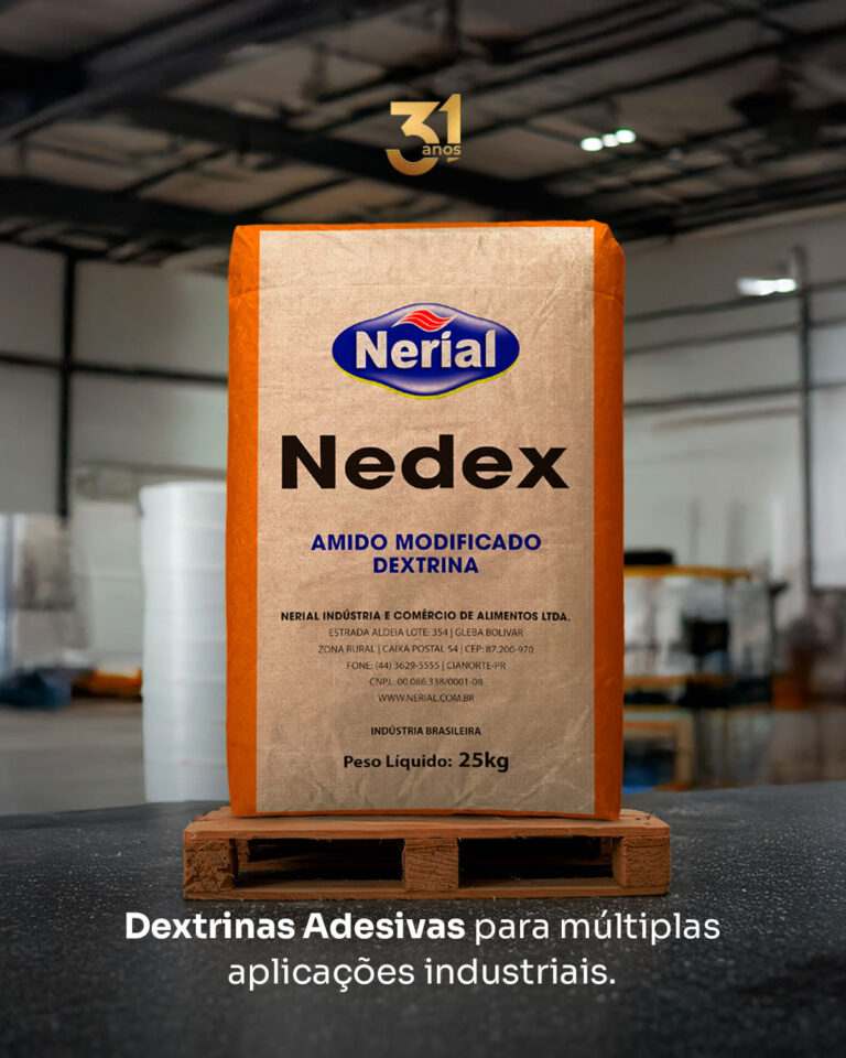 Slide Background Sobre a Nerial Desde 1994 levando à mesa o prazer e o sabor do alimento. Com confiança, qualidade e nutrição, tendo a responsabilidade em todos os processos e inovando sempre, garantindo assim a sustentabilidade da empresa e satisfação dos clientes. Saiba mais próximo de você! Encontre um Representante Clique para baixar o pdf. Baixe nosso Catálogo Nossos produtos Farinha de Mandioca Torrada Bijusada – 500g Polvilho Azedo de Mandioca Industrial – 25kg Farinha de Mandioca Amarela Grossa – 1kg Farinha de Mandioca Branca Grossa – 1kg Todos os produtos Nossas receitas Salgadas Pão de Queijo Mineiro 30 minutos 5 porções Biscoito de Polvilho Doce 1 hora 40 porções Salgadas Bolinhos de Farinha de Mandioca 45 minutos Blog Dextrinas NEDEX 27 de novembro de 2025 Leia mais Diferença entre Farinha de Mandioca Branca e Amarela. 14 de maio de 2025 Leia mais Compromisso com a Excelência 14 de janeiro de 2025 Leia mais